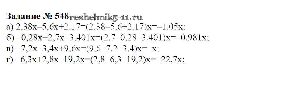 Готовая домашняя работа с ответами по Математике за 6 класс Зубарева, Мордкович Учебник Мнемозина 2015 ФГОС - Упражнения 548