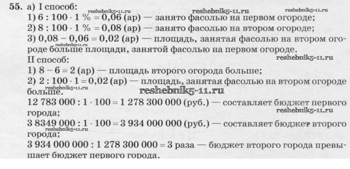 Готовая домашняя работа с ответами по Математике за 6 класс Зубарева, Мордкович Учебник Мнемозина 2015 ФГОС - Упражнения 55