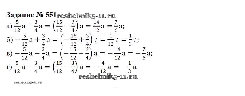 Готовая домашняя работа с ответами по Математике за 6 класс Зубарева, Мордкович Учебник Мнемозина 2015 ФГОС - Упражнения 551