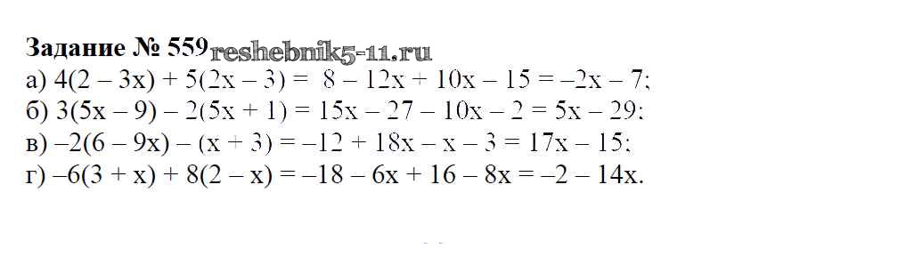 Готовая домашняя работа с ответами по Математике за 6 класс Зубарева, Мордкович Учебник Мнемозина 2015 ФГОС - Упражнения 559