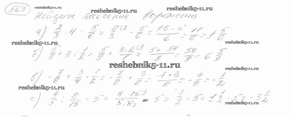 Готовая домашняя работа с ответами по Математике за 6 класс Зубарева, Мордкович Учебник Мнемозина 2015 ФГОС - Упражнения 569