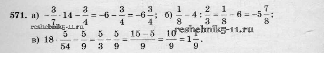 Готовая домашняя работа с ответами по Математике за 6 класс Зубарева, Мордкович Учебник Мнемозина 2015 ФГОС - Упражнения 571