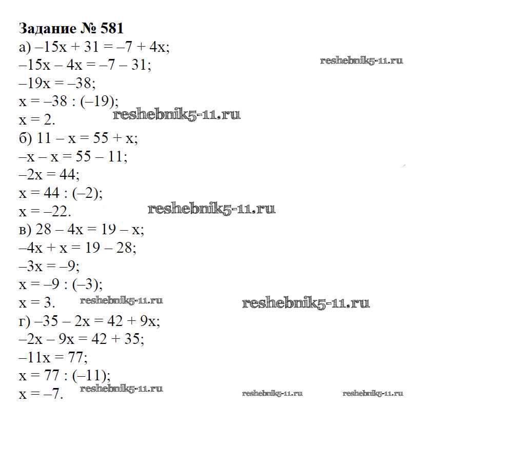 Готовая домашняя работа с ответами по Математике за 6 класс Зубарева, Мордкович Учебник Мнемозина 2015 ФГОС - Упражнения 581