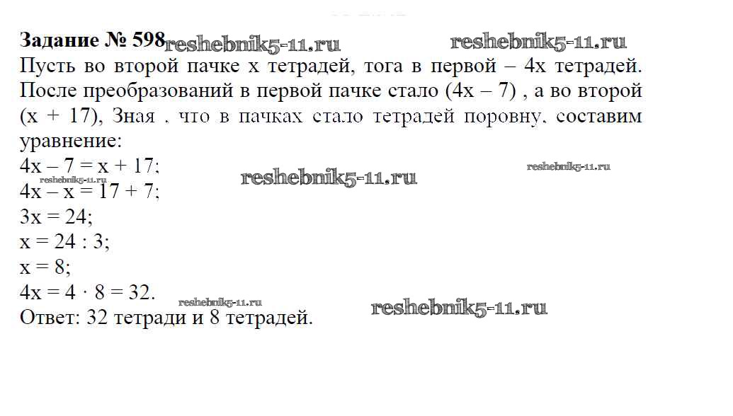 Готовая домашняя работа с ответами по Математике за 6 класс Зубарева, Мордкович Учебник Мнемозина 2015 ФГОС - Упражнения 598