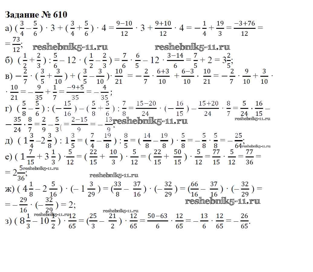 Готовая домашняя работа с ответами по Математике за 6 класс Зубарева, Мордкович Учебник Мнемозина 2015 ФГОС - Упражнения 610
