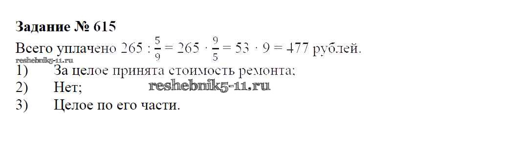 Готовая домашняя работа с ответами по Математике за 6 класс Зубарева, Мордкович Учебник Мнемозина 2015 ФГОС - Упражнения 615