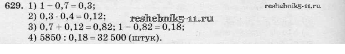 Готовая домашняя работа с ответами по Математике за 6 класс Зубарева, Мордкович Учебник Мнемозина 2015 ФГОС - Упражнения 629