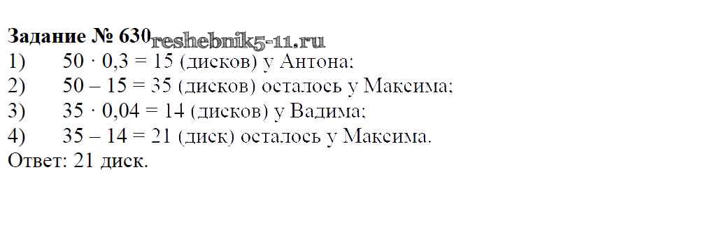 Готовая домашняя работа с ответами по Математике за 6 класс Зубарева, Мордкович Учебник Мнемозина 2015 ФГОС - Упражнения 630