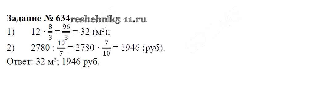 Готовая домашняя работа с ответами по Математике за 6 класс Зубарева, Мордкович Учебник Мнемозина 2015 ФГОС - Упражнения 634