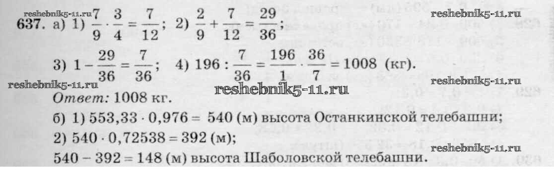 Готовая домашняя работа с ответами по Математике за 6 класс Зубарева, Мордкович Учебник Мнемозина 2015 ФГОС - Упражнения 637