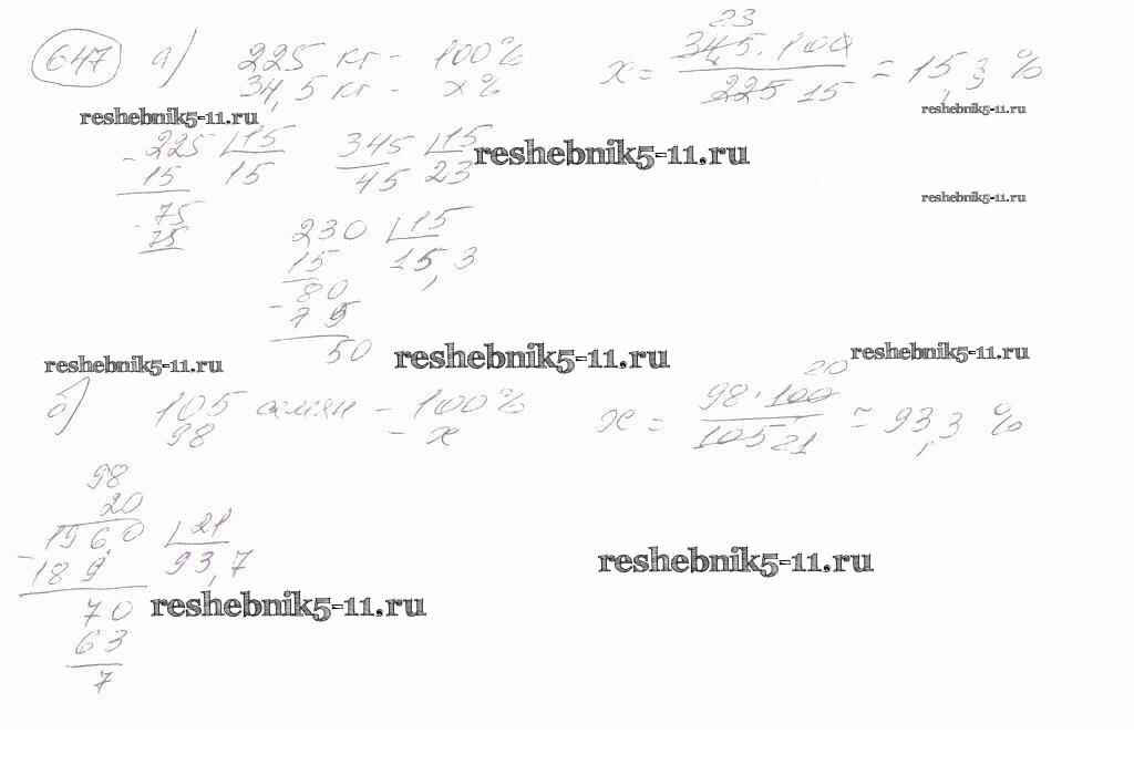 Готовая домашняя работа с ответами по Математике за 6 класс Зубарева, Мордкович Учебник Мнемозина 2015 ФГОС - Упражнения 647