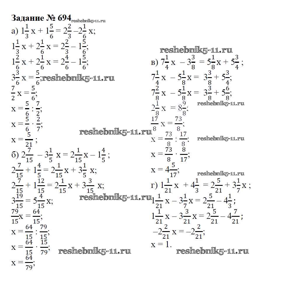 Готовая домашняя работа с ответами по Математике за 6 класс Зубарева, Мордкович Учебник Мнемозина 2015 ФГОС - Упражнения 694