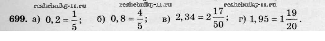Готовая домашняя работа с ответами по Математике за 6 класс Зубарева, Мордкович Учебник Мнемозина 2015 ФГОС - Упражнения 699