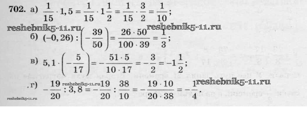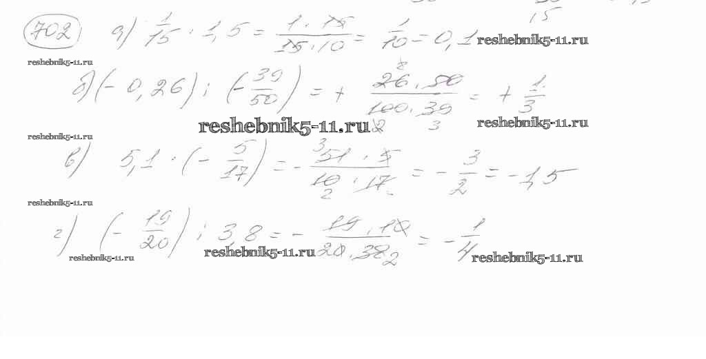 Готовая домашняя работа с ответами по Математике за 6 класс Зубарева, Мордкович Учебник Мнемозина 2015 ФГОС - Упражнения 702