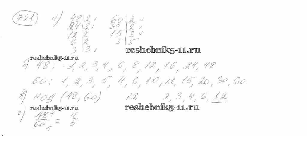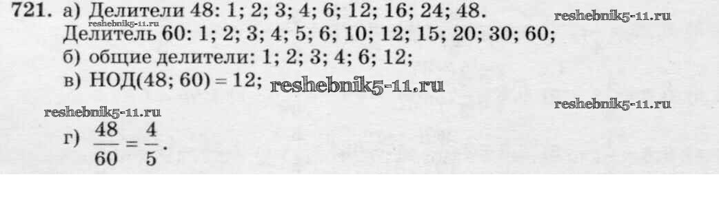 Готовая домашняя работа с ответами по Математике за 6 класс Зубарева, Мордкович Учебник Мнемозина 2015 ФГОС - Упражнения 721