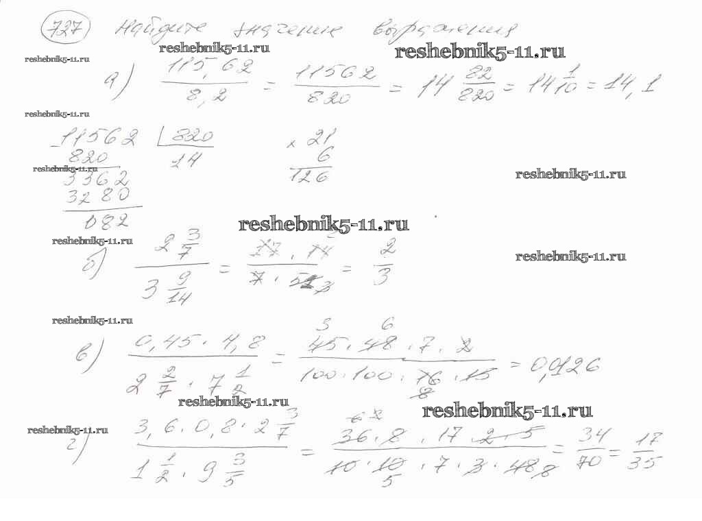 Готовая домашняя работа с ответами по Математике за 6 класс Зубарева, Мордкович Учебник Мнемозина 2015 ФГОС - Упражнения 727