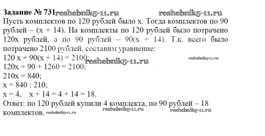 Готовая домашняя работа с ответами по Математике за 6 класс Зубарева, Мордкович Учебник Мнемозина 2015 ФГОС - Упражнения 731