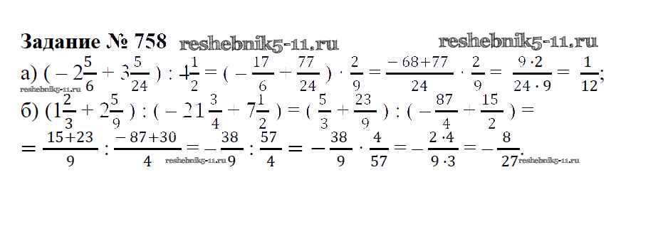 Готовая домашняя работа с ответами по Математике за 6 класс Зубарева, Мордкович Учебник Мнемозина 2015 ФГОС - Упражнения 758