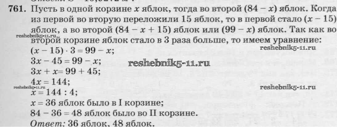 Готовая домашняя работа с ответами по Математике за 6 класс Зубарева, Мордкович Учебник Мнемозина 2015 ФГОС - Упражнения 761