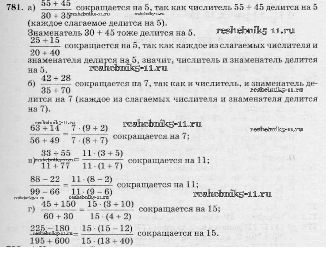 Готовая домашняя работа с ответами по Математике за 6 класс Зубарева, Мордкович Учебник Мнемозина 2015 ФГОС - Упражнения 781