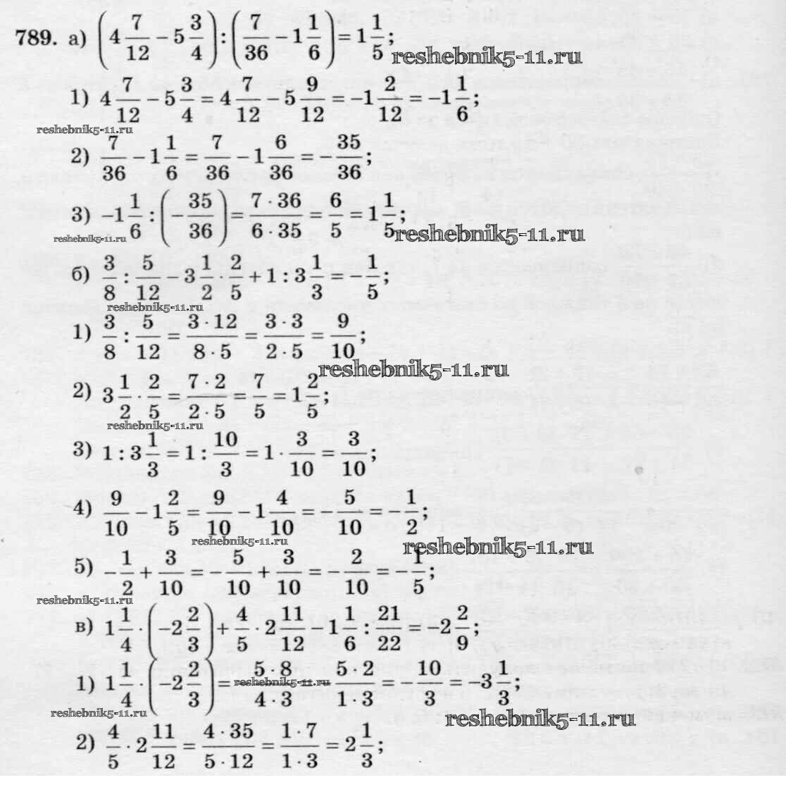 Готовая домашняя работа с ответами по Математике за 6 класс Зубарева, Мордкович Учебник Мнемозина 2015 ФГОС - Упражнения 789