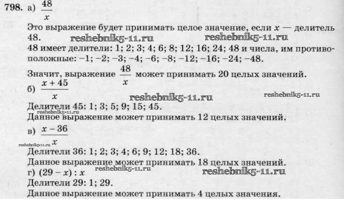Готовая домашняя работа с ответами по Математике за 6 класс Зубарева, Мордкович Учебник Мнемозина 2015 ФГОС - Упражнения 798