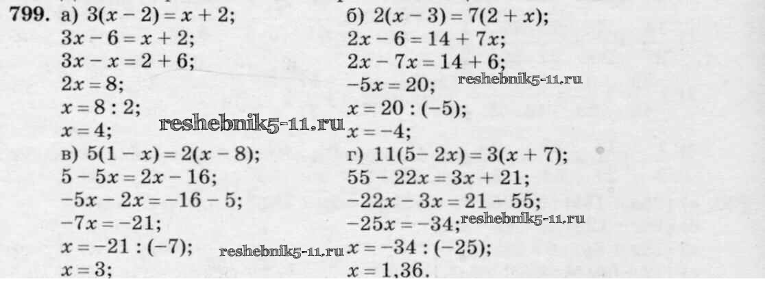Готовая домашняя работа с ответами по Математике за 6 класс Зубарева, Мордкович Учебник Мнемозина 2015 ФГОС - Упражнения 799