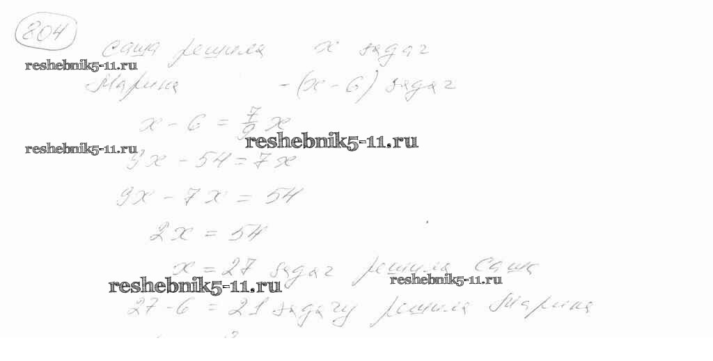 Готовая домашняя работа с ответами по Математике за 6 класс Зубарева, Мордкович Учебник Мнемозина 2015 ФГОС - Упражнения 804