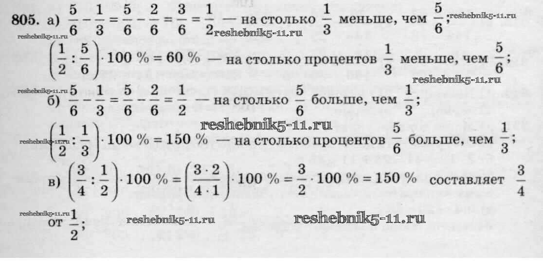Готовая домашняя работа с ответами по Математике за 6 класс Зубарева, Мордкович Учебник Мнемозина 2015 ФГОС - Упражнения 805