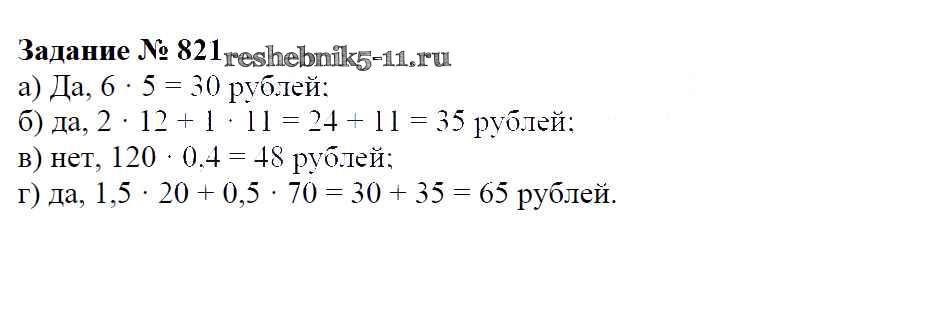 Готовая домашняя работа с ответами по Математике за 6 класс Зубарева, Мордкович Учебник Мнемозина 2015 ФГОС - Упражнения 821