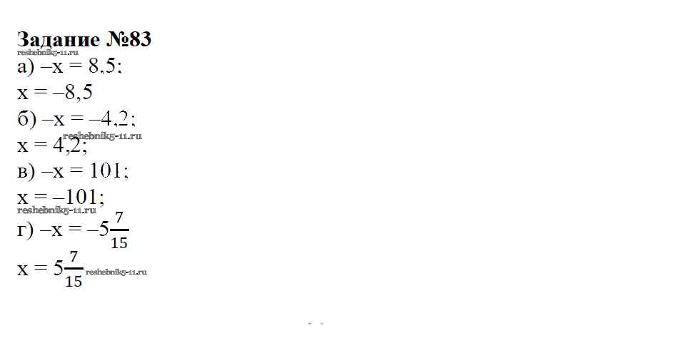 Готовая домашняя работа с ответами по Математике за 6 класс Зубарева, Мордкович Учебник Мнемозина 2015 ФГОС - Упражнения 83