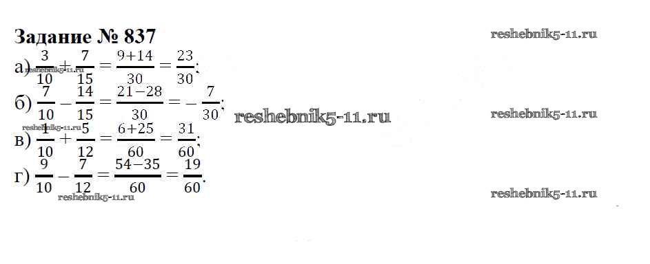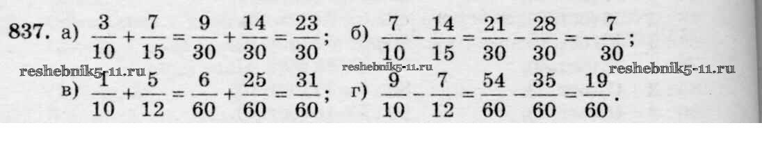 Готовая домашняя работа с ответами по Математике за 6 класс Зубарева, Мордкович Учебник Мнемозина 2015 ФГОС - Упражнения 837