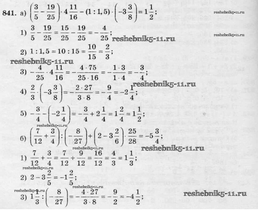 Готовая домашняя работа с ответами по Математике за 6 класс Зубарева, Мордкович Учебник Мнемозина 2015 ФГОС - Упражнения 841