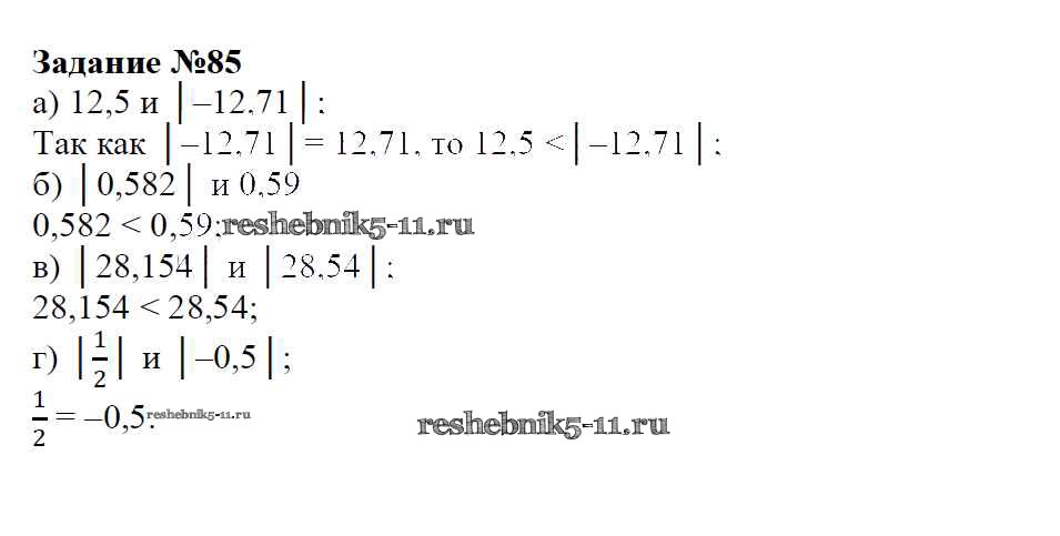 Готовая домашняя работа с ответами по Математике за 6 класс Зубарева, Мордкович Учебник Мнемозина 2015 ФГОС - Упражнения 85