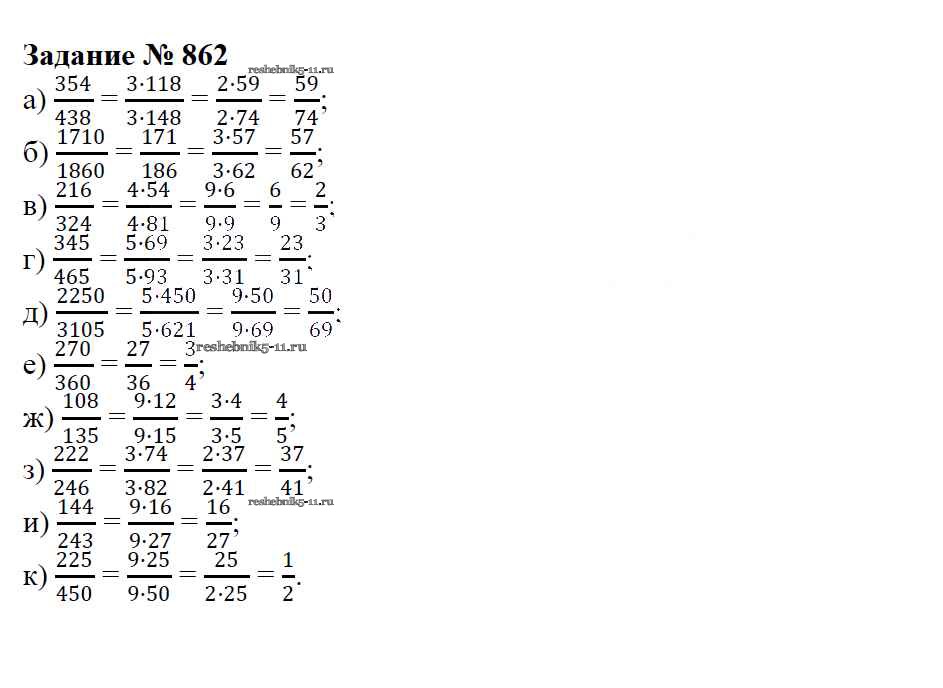 Готовая домашняя работа с ответами по Математике за 6 класс Зубарева, Мордкович Учебник Мнемозина 2015 ФГОС - Упражнения 862