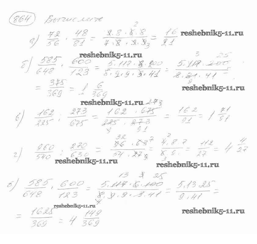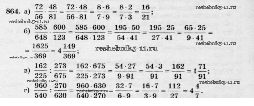 Готовая домашняя работа с ответами по Математике за 6 класс Зубарева, Мордкович Учебник Мнемозина 2015 ФГОС - Упражнения 864