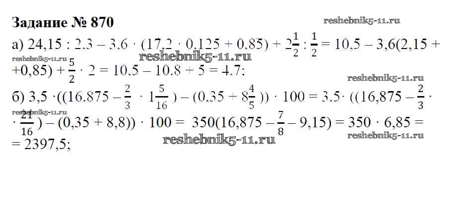 Готовая домашняя работа с ответами по Математике за 6 класс Зубарева, Мордкович Учебник Мнемозина 2015 ФГОС - Упражнения 870