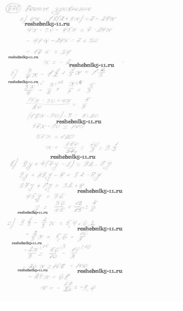Готовая домашняя работа с ответами по Математике за 6 класс Зубарева, Мордкович Учебник Мнемозина 2015 ФГОС - Упражнения 878