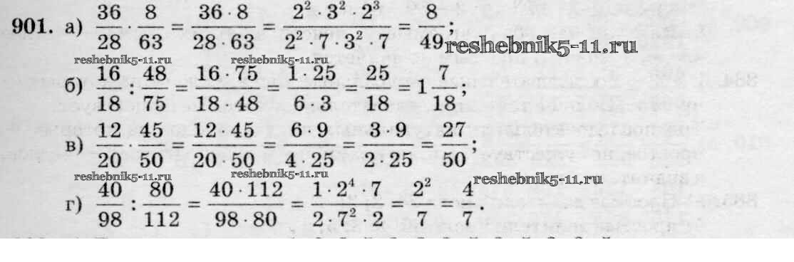 Готовая домашняя работа с ответами по Математике за 6 класс Зубарева, Мордкович Учебник Мнемозина 2015 ФГОС - Упражнения 901