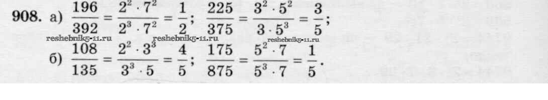 Готовая домашняя работа с ответами по Математике за 6 класс Зубарева, Мордкович Учебник Мнемозина 2015 ФГОС - Упражнения 908