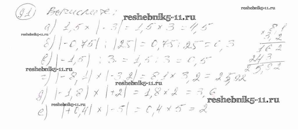 Готовая домашняя работа с ответами по Математике за 6 класс Зубарева, Мордкович Учебник Мнемозина 2015 ФГОС - Упражнения 91