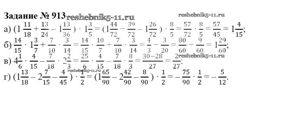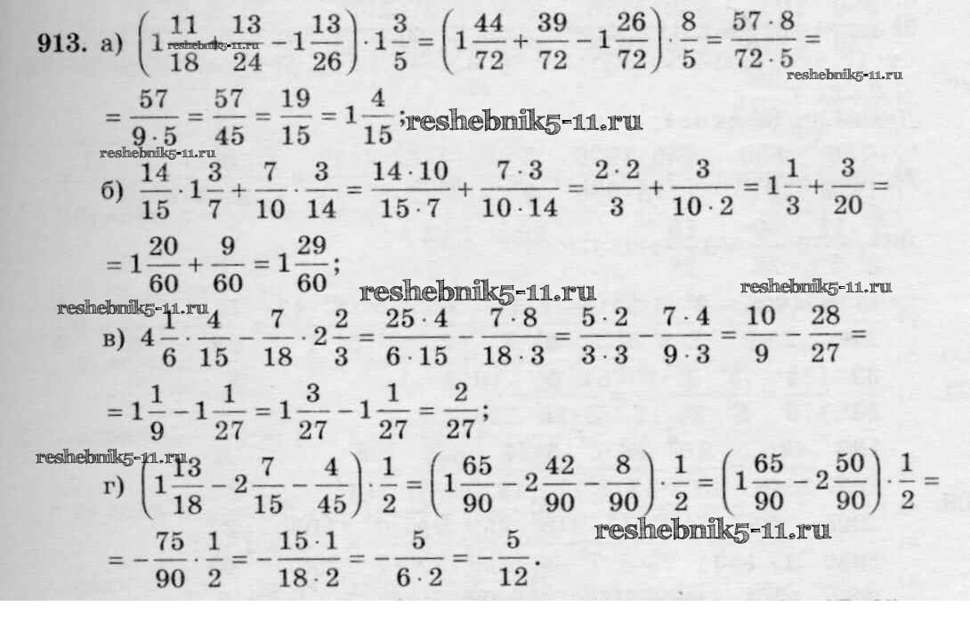 Готовая домашняя работа с ответами по Математике за 6 класс Зубарева, Мордкович Учебник Мнемозина 2015 ФГОС - Упражнения 913