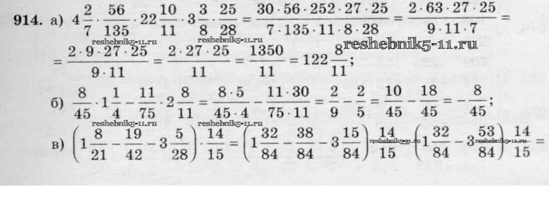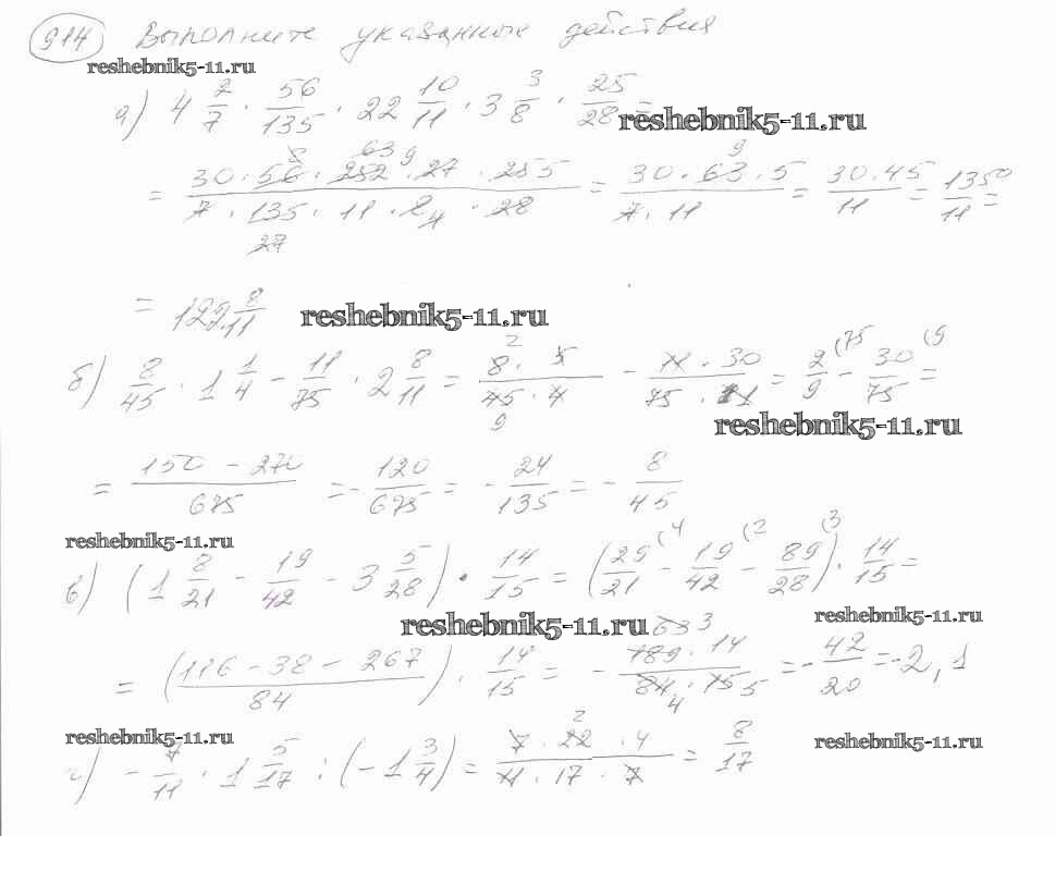 Готовая домашняя работа с ответами по Математике за 6 класс Зубарева, Мордкович Учебник Мнемозина 2015 ФГОС - Упражнения 914