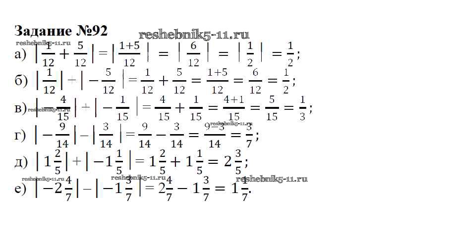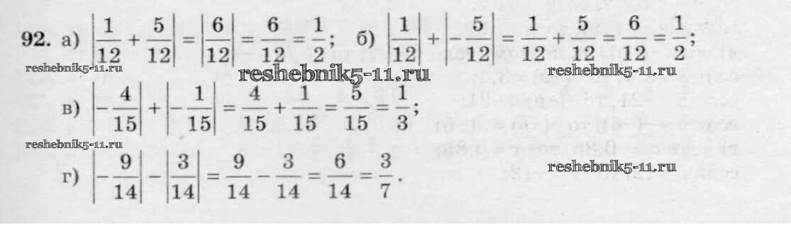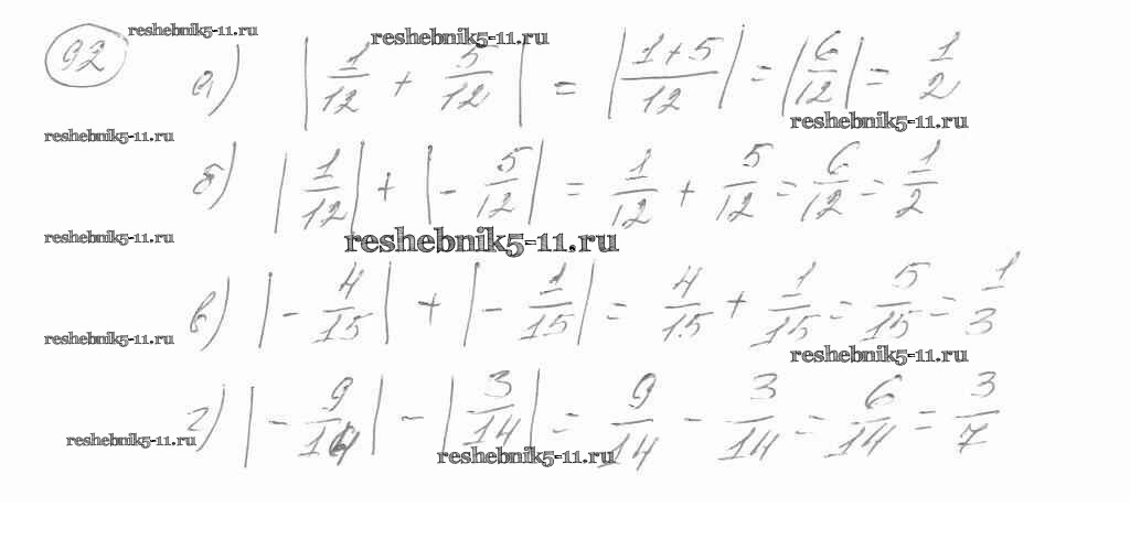 Готовая домашняя работа с ответами по Математике за 6 класс Зубарева, Мордкович Учебник Мнемозина 2015 ФГОС - Упражнения 92