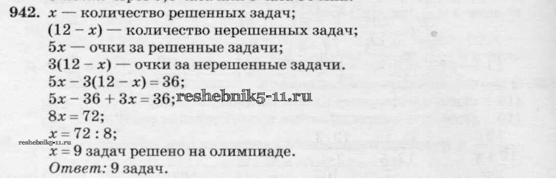 Готовая домашняя работа с ответами по Математике за 6 класс Зубарева, Мордкович Учебник Мнемозина 2015 ФГОС - Упражнения 942
