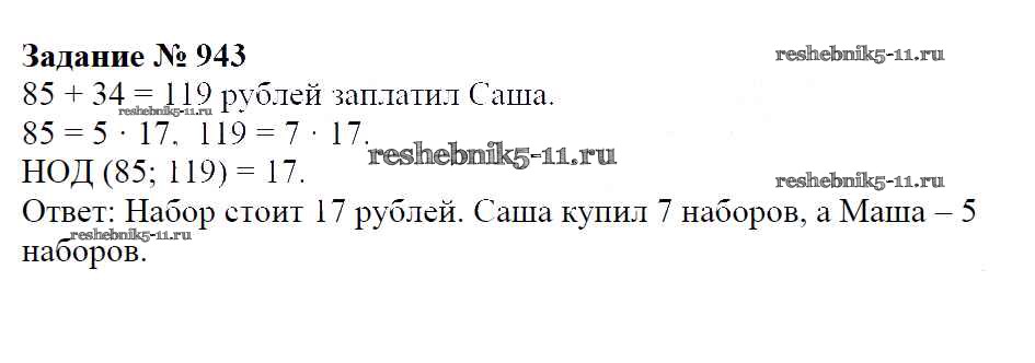 Готовая домашняя работа с ответами по Математике за 6 класс Зубарева, Мордкович Учебник Мнемозина 2015 ФГОС - Упражнения 943