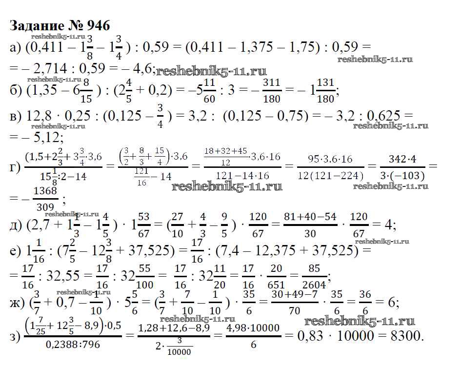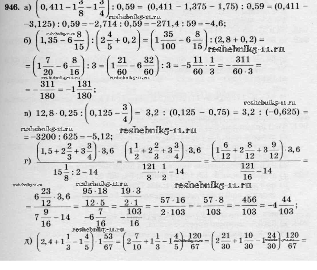 Готовая домашняя работа с ответами по Математике за 6 класс Зубарева, Мордкович Учебник Мнемозина 2015 ФГОС - Упражнения 946