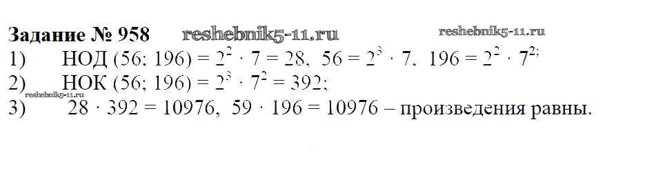 Готовая домашняя работа с ответами по Математике за 6 класс Зубарева, Мордкович Учебник Мнемозина 2015 ФГОС - Упражнения 958
