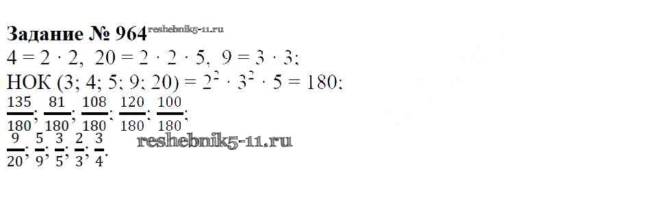 Готовая домашняя работа с ответами по Математике за 6 класс Зубарева, Мордкович Учебник Мнемозина 2015 ФГОС - Упражнения 964