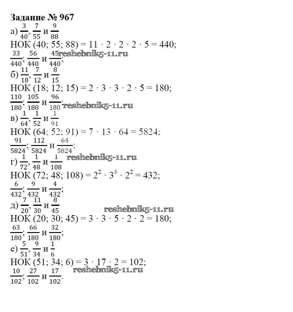 Готовая домашняя работа с ответами по Математике за 6 класс Зубарева, Мордкович Учебник Мнемозина 2015 ФГОС - Упражнения 967